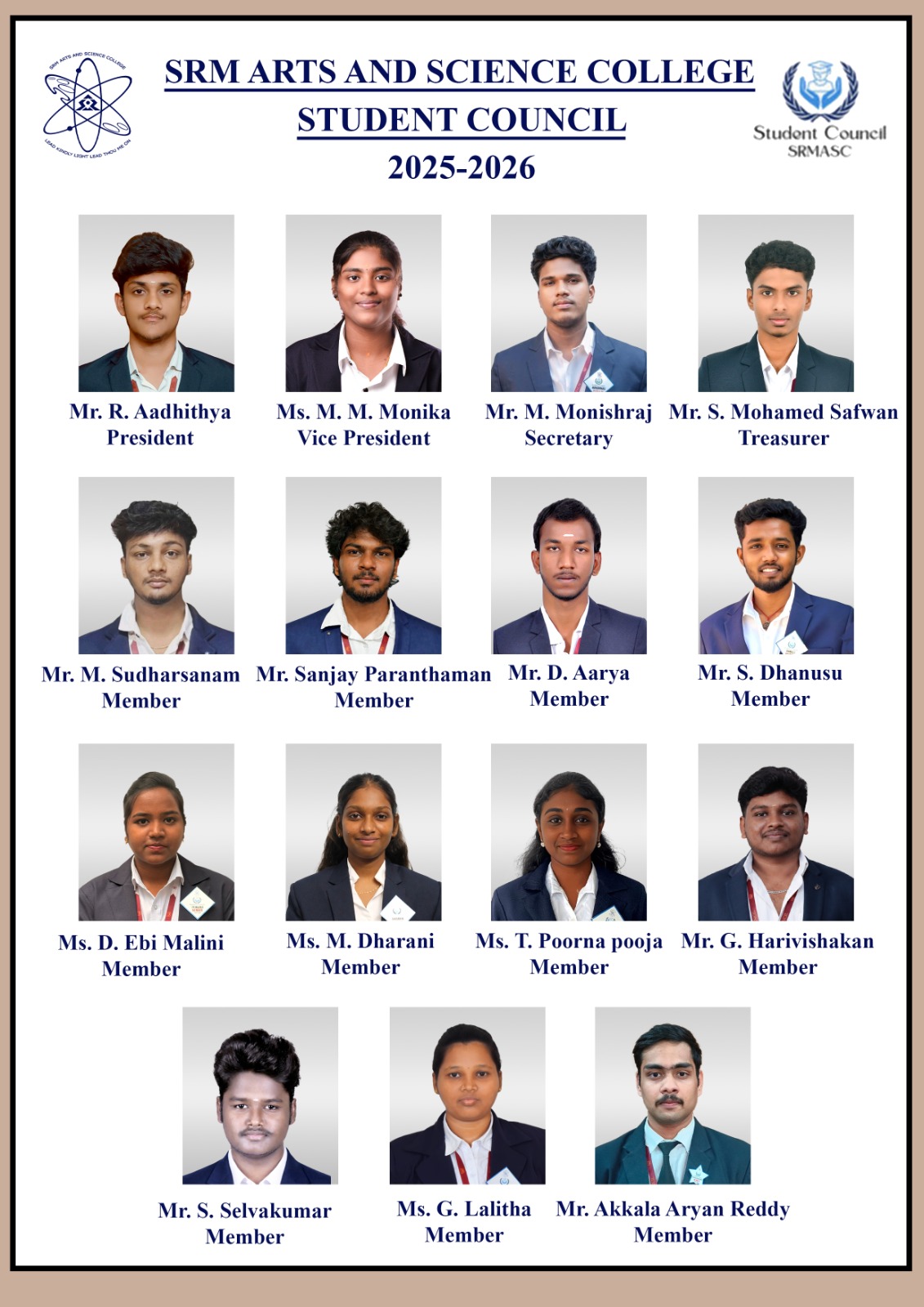 | Monishrai M | III BBA | Secretary |